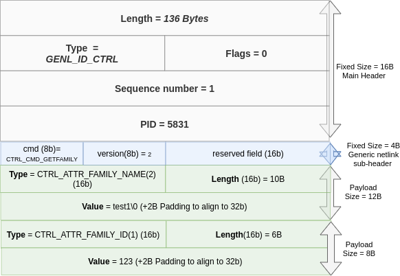 - The whole message is 32-bit aligned. Note: padding is context-dependent. It isn't needed in that specific example because the data happened to align, not because Netlink doesn't require it (as we will see later in Figure4).