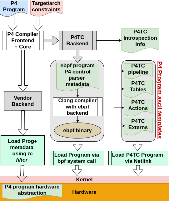 From this perspective: Think of a P4 program as an abstraction language for the datapath i.e it describes the datapath behavior. And think of P4TC as manifesting the datapath definition for both hardware offloading and kernel/software.
